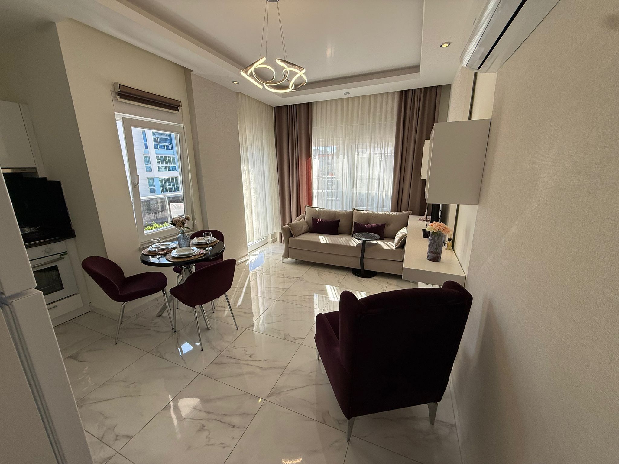 Modern yaşam alanı ve zengin site olanaklarıyla öne çıkan Calypso Residence içerisinde, taşınmaya hazır full konsept 1+1 daire kiralıktır.